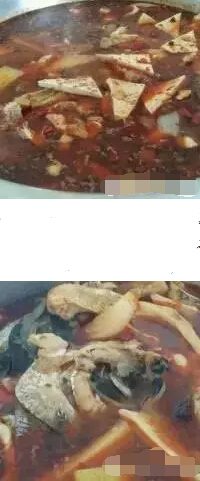 3. 半個(gè)小時(shí)之后,辣味,麻味都熬制出來(lái)了,這時(shí)候先下魚(yú)頭,魚(yú)排,十分鐘之后再下魚(yú)片。魚(yú)片只需三四分鐘,就可以了,另外根據(jù)個(gè)人喜好,你也可以往里面加入一些配菜,比如豆腐干,米豆腐,苕粉等