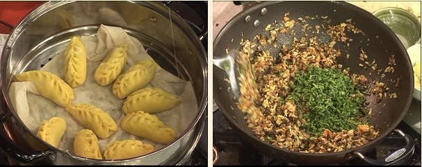 9.像包餃子一樣把餡料包進去上鍋5分鐘就可以吃啦