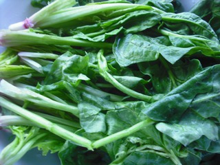 2 菠菜切段;