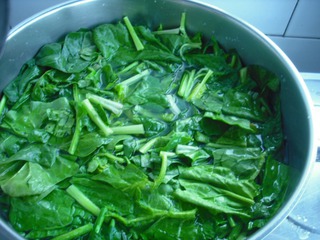 4 取出鍋中的菠菜,用涼水沖涼備用;
