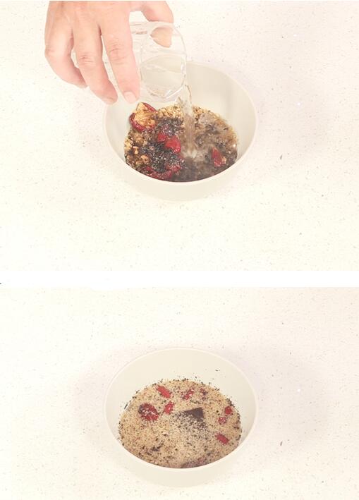 阿膠固元飲的材料:黑芝麻粉40g,核桃粉30g,阿膠20g,紅棗碎15g,冰糖30g,黃酒150毫升
