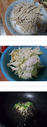 白菜豆腐絲的材料:包菜小半個,豆腐絲400克,油,鹽