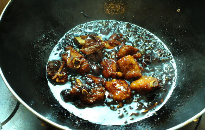 11、待鍋中醬汁燒開(kāi),蓋上鍋蓋,轉(zhuǎn)中火燜煮 的做法