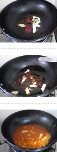 2.坐鍋倒油燒熱,放蔥姜爆香后加入一勺豆瓣醬和一勺辣醬煸炒均勻,炒出醬香味后加入清水燒開后放入醋、糖、鹽后加入嘎魚,大火燒開后,轉中小火燉至20分鐘,收干湯汁就好了的做法