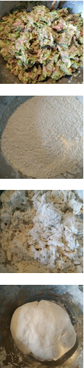 大家注意哦:攪拌肉餡時(shí)不放鹽,等放入擠出水分的黃瓜餡時(shí)一起放鹽,因?yàn)辄S豆醬和生抽本身都是咸的,還有揉黃瓜時(shí)加了鹽,所以最后一起調(diào)鹽。