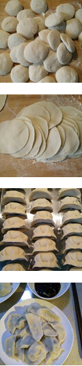 4.醒好的面團(tuán)等分分成小劑子,按扁,搟成餃子皮,學(xué)做菜