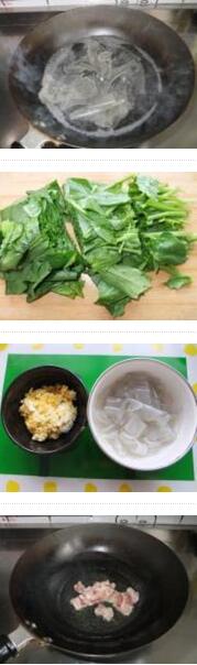 菠菜炒粉皮的材料:粉皮,雞蛋,菠菜,蒜末,醬油,鹽,雞精,蠔油