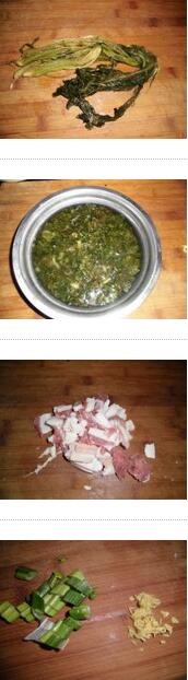 1.腌制雪里紅凈,切丁,過水,豬肉切片,蔥姜切好,豆腐切塊,鹽水焯一下