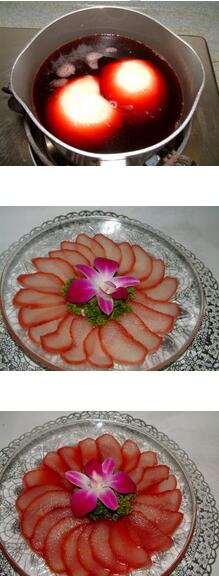 3.吃之前把梨子切成薄片擺入盤中,倒些煮梨的紅酒,美味極了。