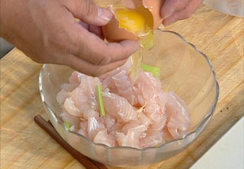 1 龍利魚洗凈改刀切成條,放入碗中加入一克鹽,一勺料酒,擠一點姜汁,連同姜一塊放入,放上蔥段,拌勻,然后加入一個蛋清,繼續(xù)攪打,攪勻后把碗中的蔥姜撿出來,加入一勺淀粉,攪勻后倒入一點食用油,拌勻備用怎么做好吃