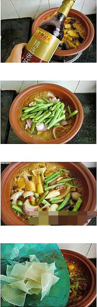 1.干粉皮泡發(fā)備用,茄子,土豆,洋蔥洗凈切滾刀塊,四季豆掰段,臘腸切片。