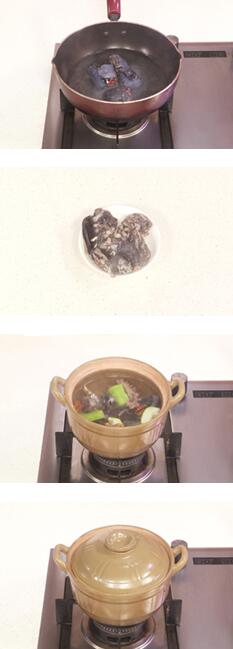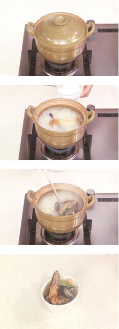 3. 砂鍋中注入適量清水,倒入烏雞塊、花膠、海參、佛手瓜、核桃仁、干貝,拌勻,加蓋,大火煮開轉(zhuǎn)小火煮3小時(shí)至食材熟透,揭蓋,加入鹽,稍攪拌至入味,關(guān)火,就可以盛出享用啦。