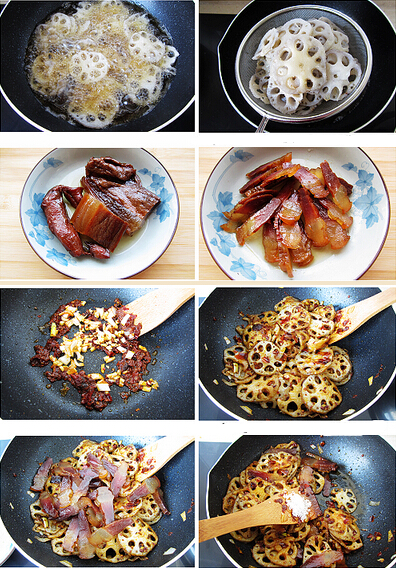 干鍋臘肉脆蓮藕的做法: