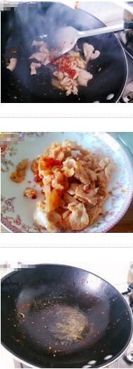 2.鍋里放入適量油,放入豬肉煸炒,放入一勺自剁椒,翻炒均勻,炒好的豬肉出鍋待用