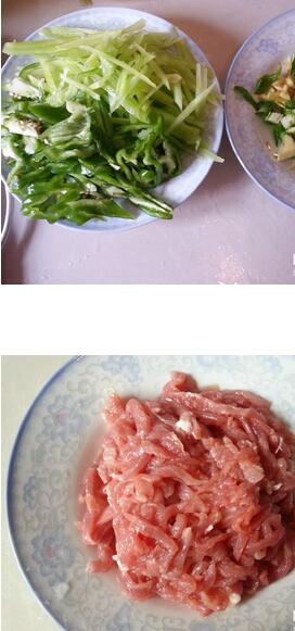 萵筍炒肉絲的材料:萵筍2-3個(gè),青椒2-3個(gè)。瘦肉,老抽、生抽、黃酒、鹽、淀粉,蔥、姜,食用油