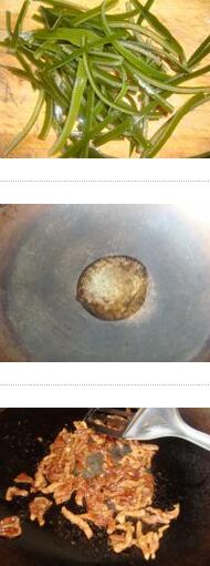 2. 鍋中放油,加入肉絲翻炒,加入海帶絲,加鹽繼續(xù)翻炒,可以適當(dāng)?shù)募狱c(diǎn)水,炒熟出鍋即可