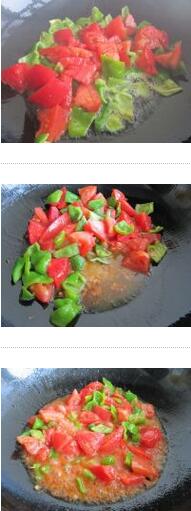 3. 熱鍋涼油加辣椒炒出香味再加西紅柿再加鹽翻炒出水,加雞蛋,加白糖翻炒均勻即可