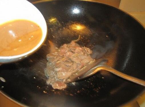 1.牛肉切薄片加入雞粉、糖、生抽、料酒、油腌制