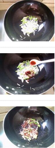 4、熱鍋冷油,下入蒜末爆香,加入汆燙的包菜翻炒,倒入腐乳汁、白糖、雞粉和紅椒絲翻炒融和,關(guān)火,順著鍋沿倒入白酒即可起鍋。