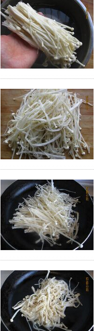 2.金針菇去掉根部,用水洗凈后擠凈水份,撕開備用。