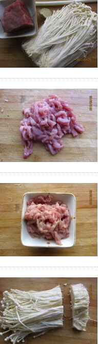 金針菇炒豬肉的材料:金針菇260克,豬肉120克,油,鹽,蔥,姜,料酒,醬油,淀粉,蛋清,