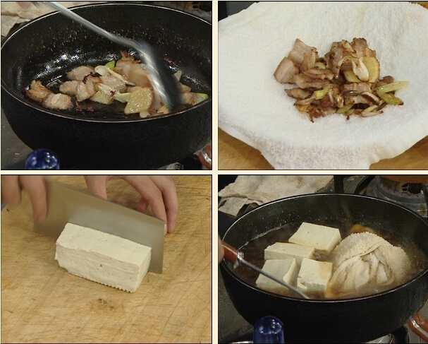 二: 原鍋加高湯,加入醬油,辣鮮露,鹽,糖,放入五花肉包,放入豆腐,小火煮兩個(gè)小時(shí)就做好了