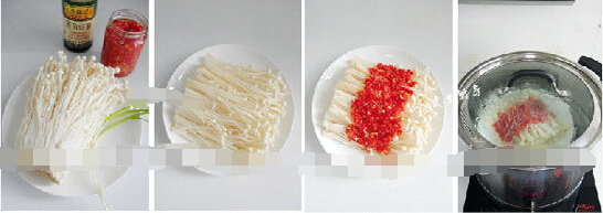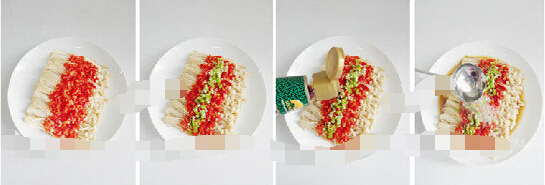 剁椒金針菇的材料:金針菇400g,剁椒4湯匙,蒸魚豉油3湯匙,小蔥2棵,植物油2湯匙 美食網(wǎng)