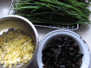 2 雞蛋炒好,木耳泡發(fā),韭菜洗凈。