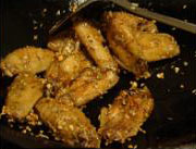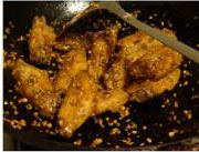 5 炒鍋留底油,跟炒菜差不多就行,放入炸好的雞翅,再灑上適量的鹽。