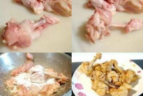 3. 坐鍋倒油燒到五成熱,下入腌好的雞翅根炸至淺黃撈出,然后加熱油溫,倒入炸制一遍的雞翅根翻炸至金黃色,撈出濾油備用。的做法