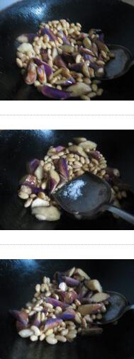 3、坐熱鍋倒油,下姜絲爆鍋后,加茄子、紅尖椒翻炒,加水稀釋黃豆醬,放到煮軟的茄子里,水開即可。最后加鹽、醋調(diào)味的做法