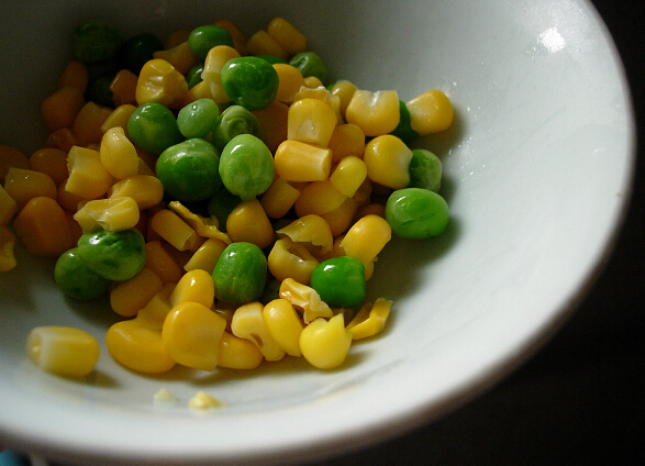 咖喱雞丁炒飯的材料:雞肉,米飯,玉米粒,豌豆粒,咖喱粉,鹽