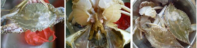 1、螃蟹宰殺干凈后斬大塊。