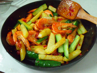 這道菜用炸的,蝦外酥里嫩。特別好吃。用郫縣豆瓣入菜是重口味的必選,但是一定要小火炒到油和醬融合,還要加點(diǎn)白糖,才會(huì)好吃。