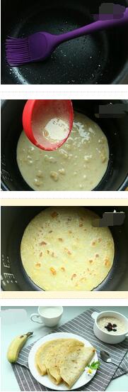 香蕉煎餅的材料:面粉60g,香蕉兩條,雞蛋1個(gè),牛奶180g,,糖一湯匙
