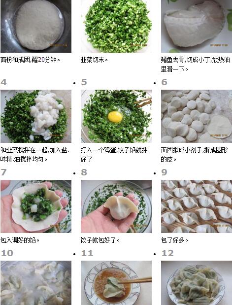 鱈魚(yú)韭菜餃子的材料:韭菜200g,鱈魚(yú)一塊,雞蛋一個(gè),花生油,鹽,味精一點(diǎn),面粉250g