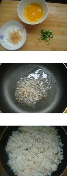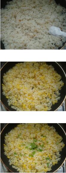 干貝蛋炒飯的材料:剩米飯1碗,干貝6粒,雞蛋1個,香蔥1根