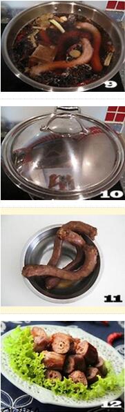 4.煮好的鴨脖子在鍋中浸泡3—4小時。(時間久更入味)取出后自然風干冷卻后切小段就可以了