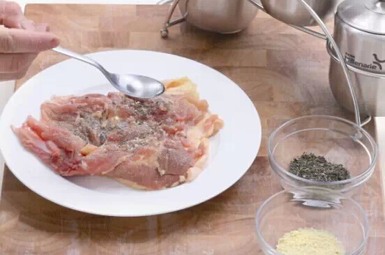 2、 撒上雞粉、蔥姜蒜粉、意大利混合香草、橄欖油攪拌均勻,腌制至少半小時(shí);