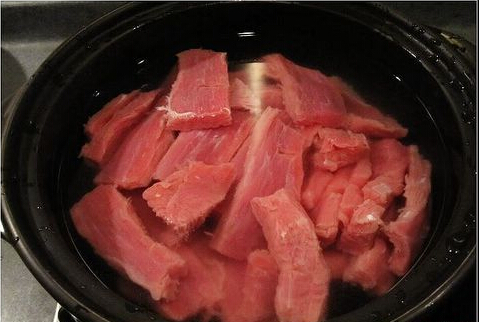 2.鍋中放冷水和牛肉,煮開(kāi),也就是緊水的過(guò)程。