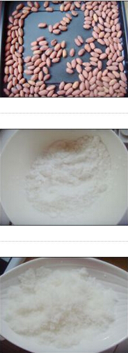 1.生花生放在烤盤中,放入烤箱烤熟,中間翻動幾次