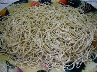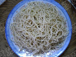 11 簞好的面條挑入盤中。