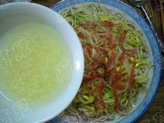 13 加入香肚絲,淋上姜蒜汁。