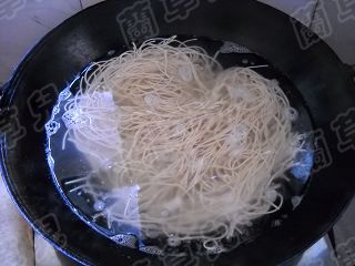 9 鍋中水開(kāi),下入面條。稍稍撥動(dòng)幾下即可撈起。
