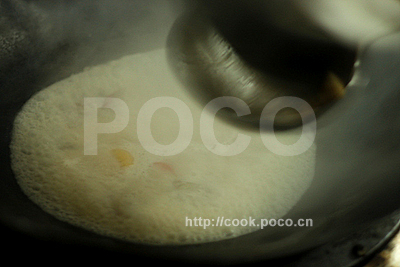 5、然后倒入2勺雞湯;