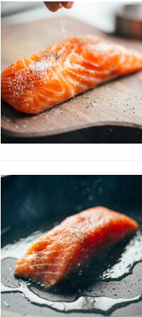 1. 三文魚每面各撒半勺鹽,半勺黑胡椒,抹勻。