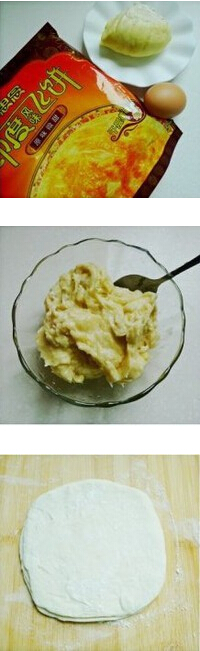榴蓮酥的材料:榴蓮肉一塊,飛餅皮三張,雞蛋液
