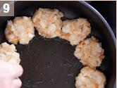 4. 坐鍋中火燒熱,加少許油,用湯匙取一湯匙的份量面糊壓成餅狀,放入鍋煎至兩面金黃色及雞肉全熟透就做好了