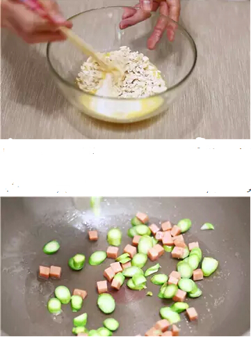 1. 蘆筍洗凈切小片,火腿切小丁