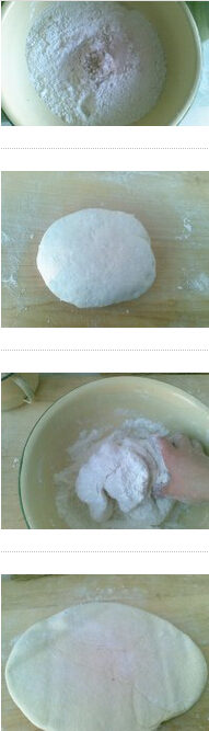 3.在面團中放入適量面粉,開始第一次戧面,盡量把面粉揉進去